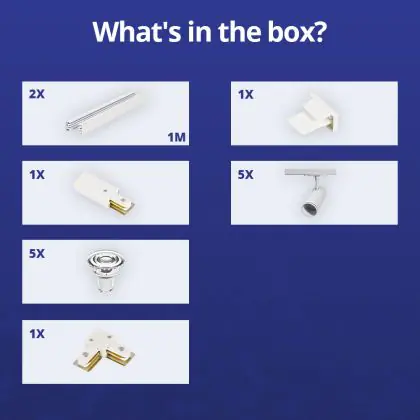 | Fabrikantnaam | Complete L shaped 1-Phase Track Set White incl. 5x Spot fixture + GU10 2700K 3W Dim – 1 x 1 meter i | |