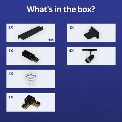 | Fabrikantnaam | Complete L shaped 1-Phase Track Set Black incl. 4x Spot fixture + GU10 2700K 3W Dim – 1 x 1 meter i | |