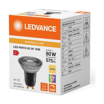 Ledvance LED PAR16 GU10 Reflector 8.3W 575lm 36D - 930 Warm Wit | Beste Kleurweergave - Dimbaar - Vervangt 80W