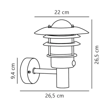 Nordlux Lønstrup 22 Wandlamp Staal en Glas Grijs | 220mm - IP44 - Geschikt voor E27 - Bewegings- en Lichtsensor