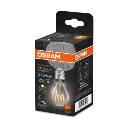 | Fabrikantnaam | Vintage 1906 LED CLASSIC A,B,P SLIM FILAMENT DIMMABLE 4.8W 827 Clear E | |