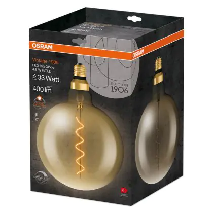 Osram Vintage 1906 LED E27 Globe Filament Goud 200mm 4.8W 400lm - 822 Zeer Warm Wit | Dimbaar